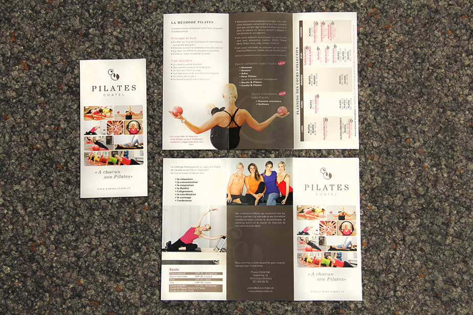 Réalisation d’un dépliant pour des cours de pilates pour Physio Châtel Sàrl.grande_pilates