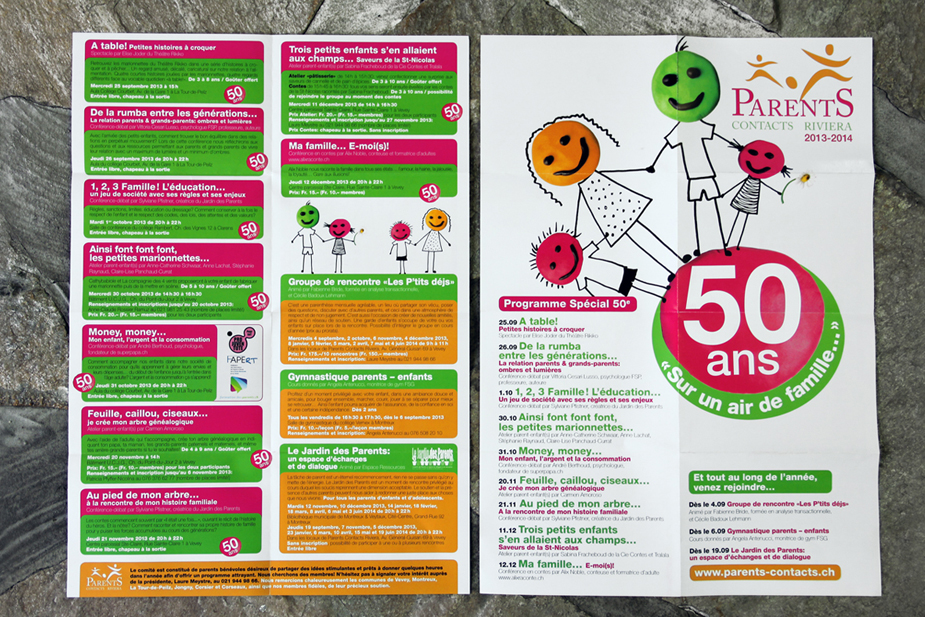 A l’occasion de son 50e anniversaire, création du programme des cours et activités de l’association Parents-Contacts Riviera