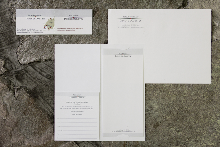 Elaboration d’une ligne graphique pour toute la papeterie et les éléments de communication de ce célèbre restaurant. Le logo a été décliné en quatre variantes afin que chaque partie de l’établissement ait son identité.