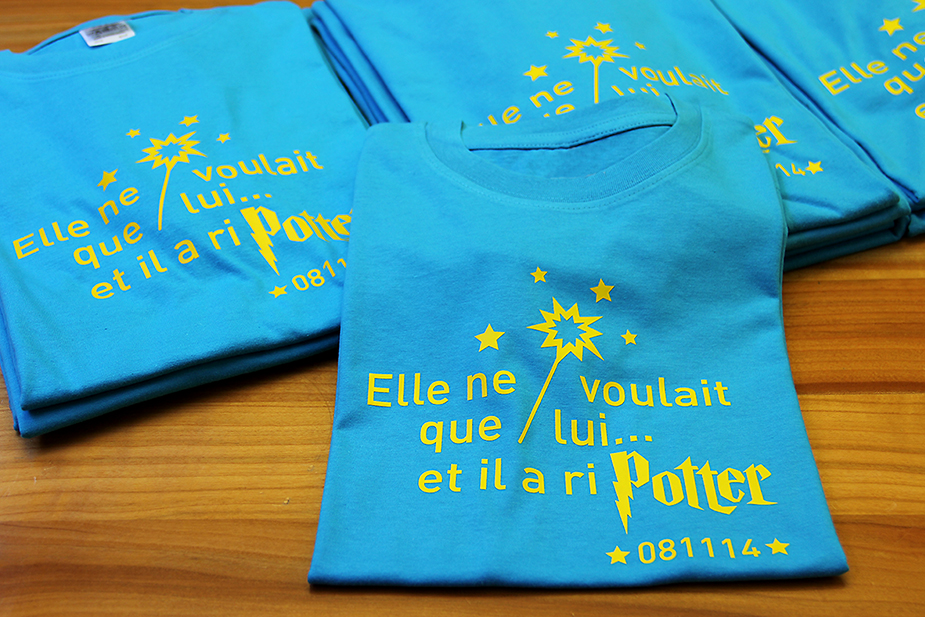 Création du visuel du T-shirt pour une sortie «enterrement de vie de garçon». Réalisation chez Point Carré des T-shirt.